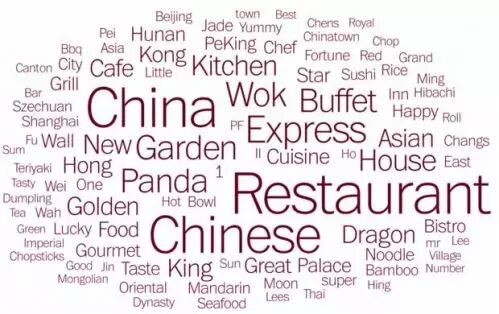 想要了解美国的中餐馆取名上到底有什么特点,《华盛顿邮报》的两名记者分析了美国知名点评网站Yelp上的数据。这家公司提供了约4万家中餐馆的名字。在经过筛查后,这些数据显示出了一些有趣的特点。