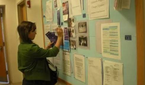 大学校园会设置公告栏可以让学生张贴关于校园内的信息,而不少的社区学院甚至默许学生们在所有能贴东西的地方(公告栏、灯柱、课室门、黑板旁边、卫生间里每个门……)张贴关于出售2手课本、工具、器材的"小广告"。