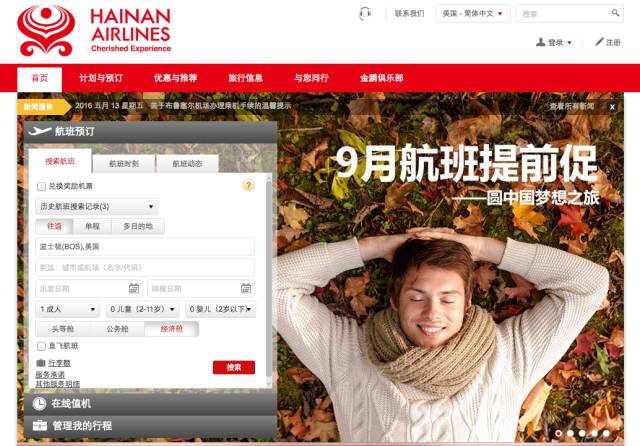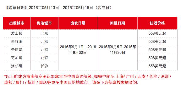 从美国始发至中国的航班,往返仅$508,订票渠道就仅限海航官方网站。