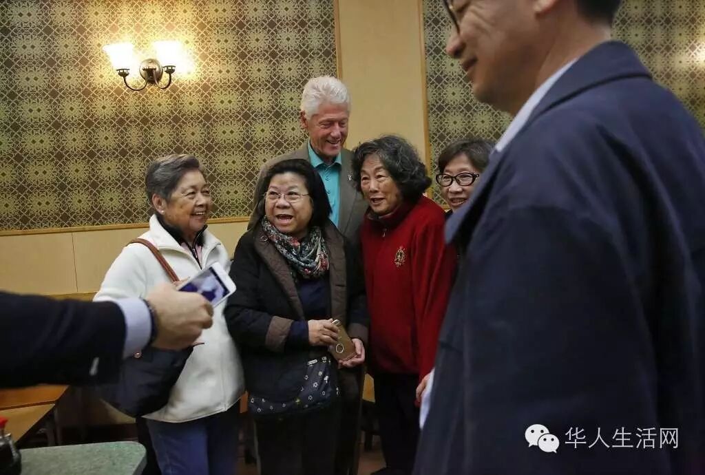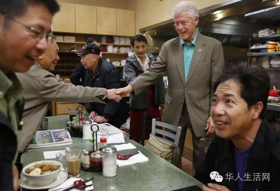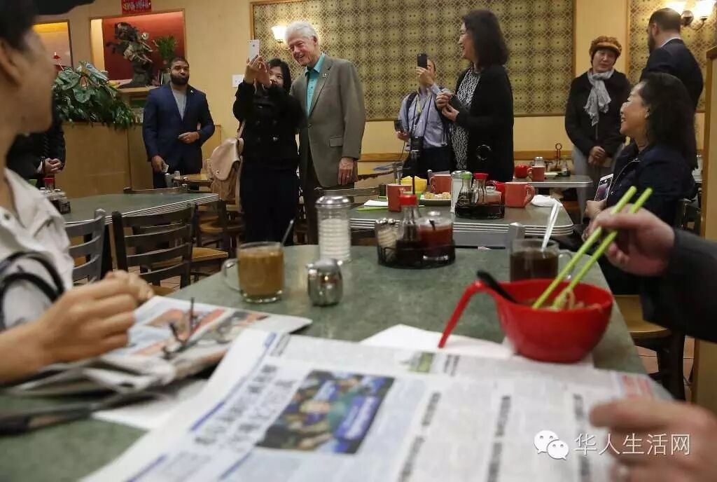 为了帮助妻子拉票,周二,美国前总统克林顿来到旧金山唐人街,并在华人一家茶餐厅停留数分钟,与顾客交谈并合影,这是前总统吗?也太没有架子了。。