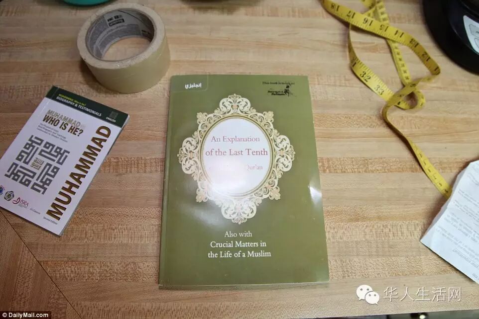 书屋的书架上摆放着关于穆斯林信仰的书籍。从家里的家用品及健身器材可以看出,马丁痴迷于自己的体格。