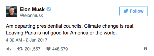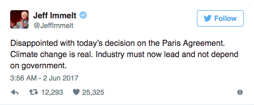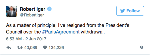 此外一大波商业圈的大佬也都抵制起了川普。包括苹果、微软和谷歌在内的一群科技巨头曾联名写信给川普强烈要求美国留在巴黎协定中。