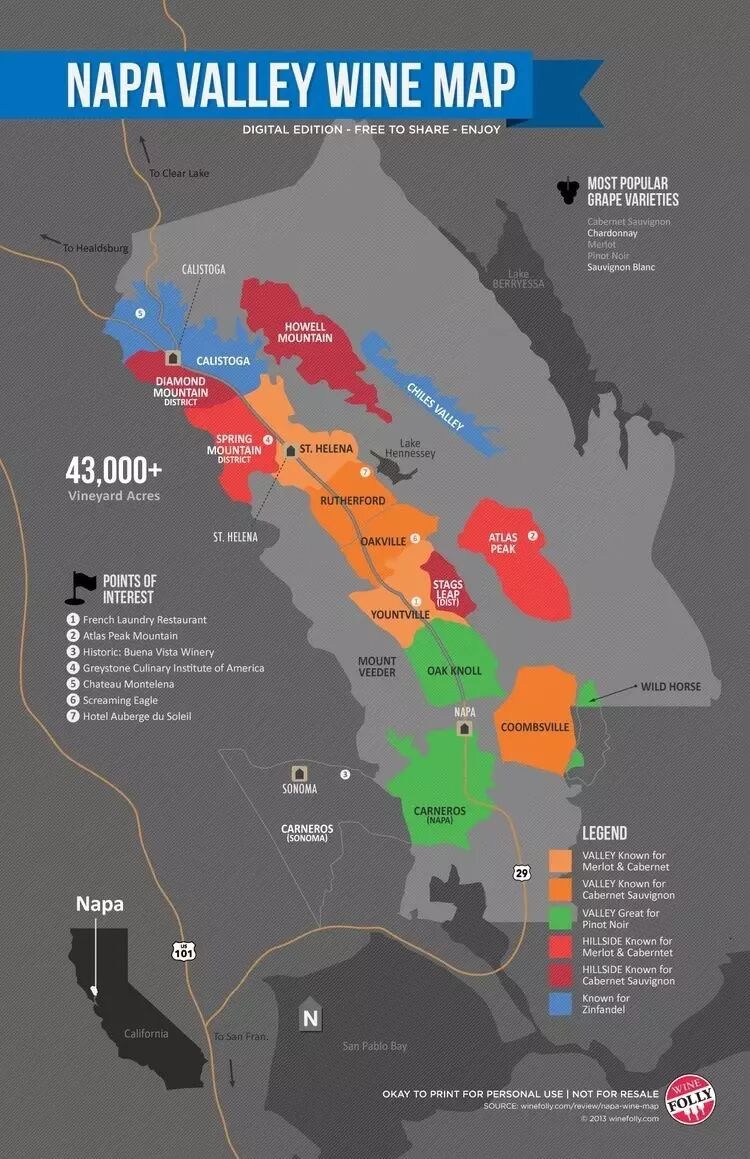 附上纳帕谷的地图,大家的旅游攻略写起来!