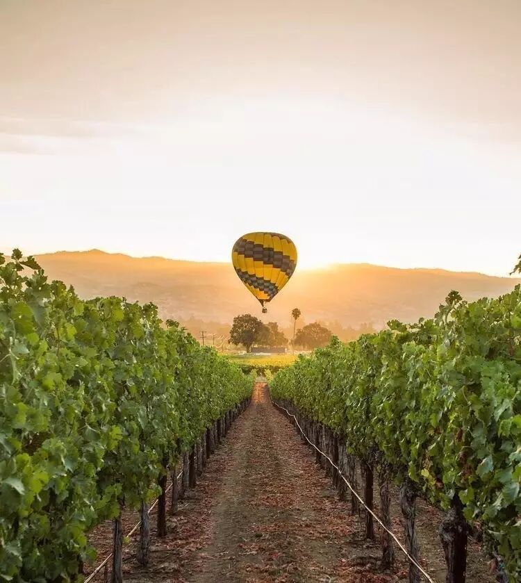 想要观赏整个纳帕谷最完整的山谷美景,乘坐热气球绝对是最好的方法,强烈建议订一班日出热气球之旅,观看纳帕谷的第一缕夕阳。