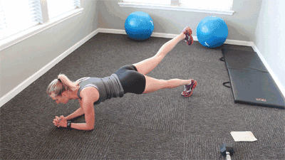直臂平板支撑+左右交替侧提膝