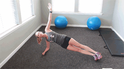 直臂平板支撑+侧身手碰脚