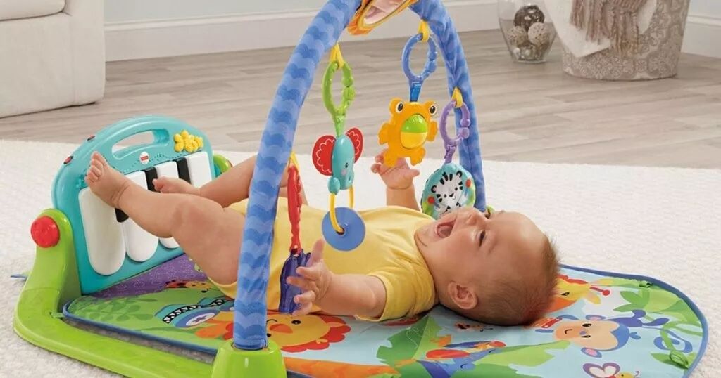 费雪的婴儿钢琴健身毯非常有趣,毯子很柔软,可以供宝宝坐着、趴着、躺着玩,眼睛耳朵手脚都能活动。宝宝用脚可以蹬出音乐,培养对音乐的兴趣,还能做个小小的腿部锻炼!毯子上方还有动物摇铃,可以吸引宝宝注意力,玩半个小时都意犹未尽~ 毯子占地不大,哪哪都能放~