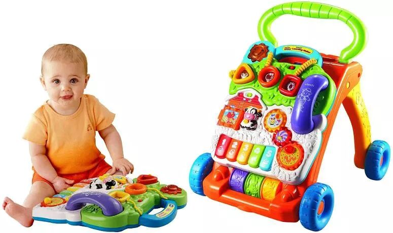 这款学步车可以帮助9至36个月的宝宝体验从爬行到步行的乐趣。宝宝可以先从色彩丰富的活动板开始玩,旋转的齿轮,钢琴键,歌曲键和闪灯的按钮可以让宝宝玩上几个小时,同时帮助他们发展自己的感官和运动技能。