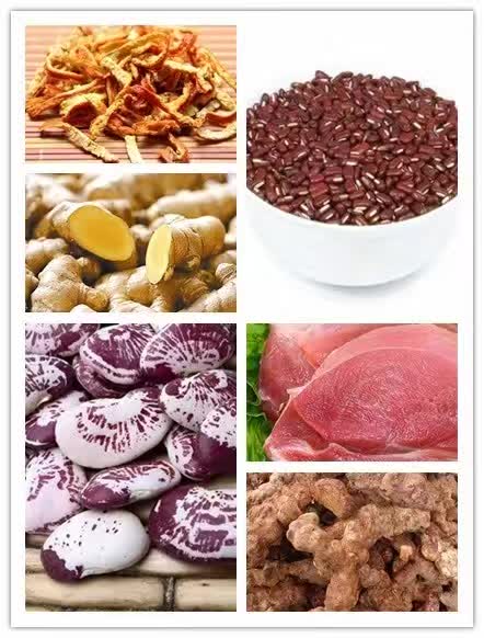 材料:祛湿豆、赤小豆、土茯苓、陈皮、猪瘦肉、生姜