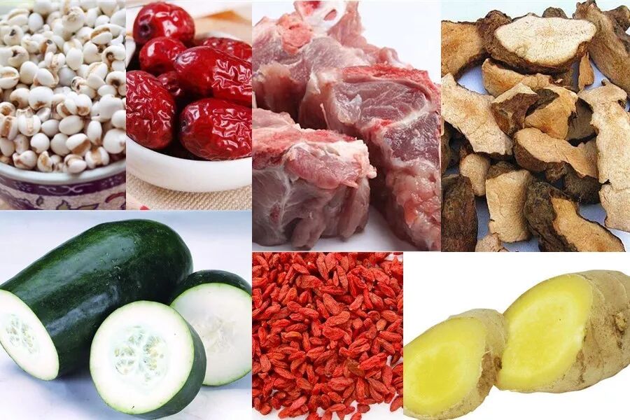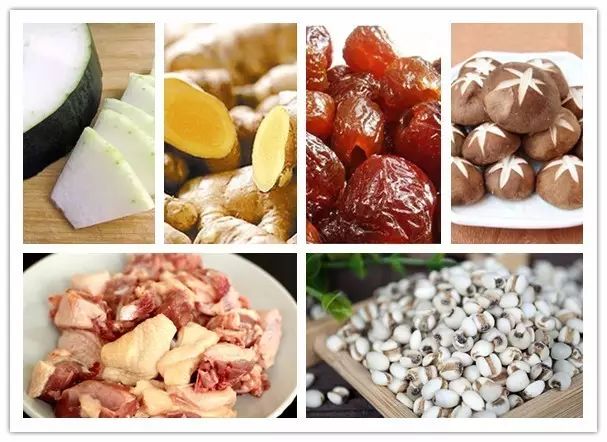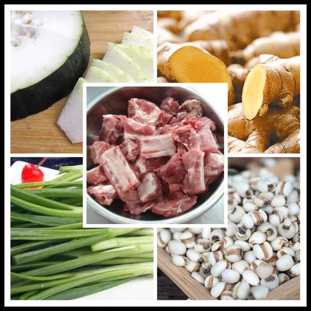材料:猪大骨、冬瓜、薏米、茯苓、红枣、枸杞、姜片