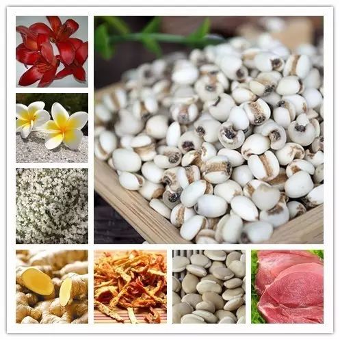材料:木棉花、鸡蛋花、槐花、薏米、扁豆、陈皮、瘦肉、生姜