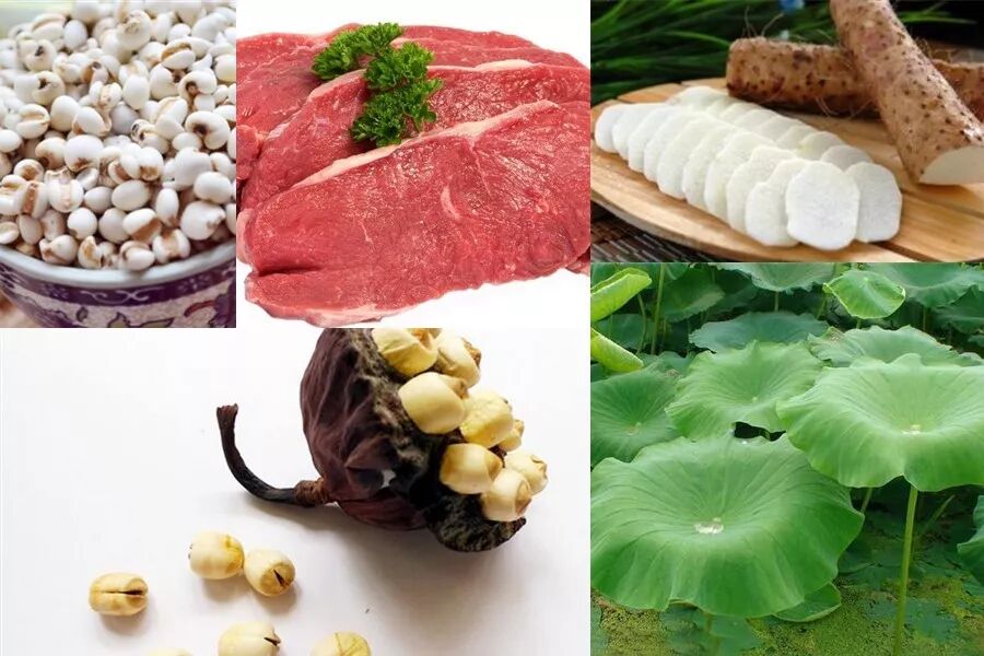 材料:荷叶 莲子 薏米 淮山 瘦肉