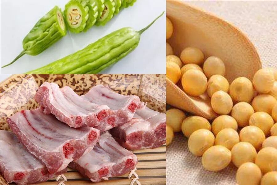 做法:先泡好黄豆,排骨飞水,加入黄豆煲半个小时后,加入苦瓜再煲半个小时