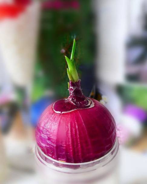 水培:把洋葱头顶须根剪掉,放在容器里加入少量清水,只接触到洋葱的最下层即 可。水中加入两片阿司匹林会帮助它快速抽芽。