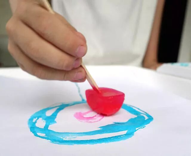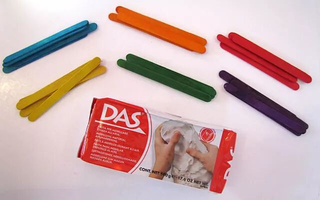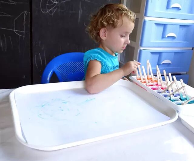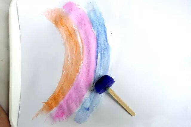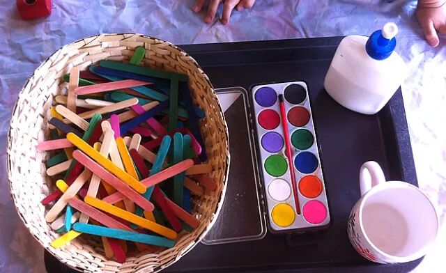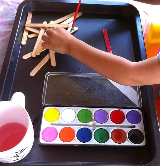 将冰棒棍涂上蓝色、橙色、红色......这些都是达尼尔喜欢的颜色哦!