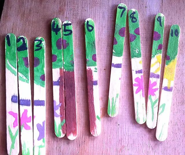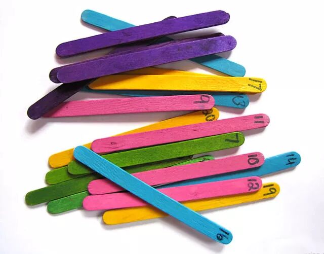 在彩色的冰棒棍上写上简单的数字1~20,这里宝妈可以根据娃年龄大小,调整数字哦!