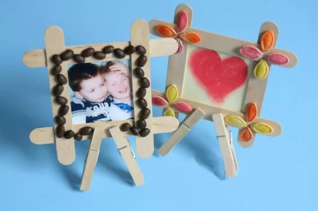 除了以上可爱的小黄鸡,我们还可以用冰棒棍、回形针、胶水、染色的南瓜籽等制作一个实用的相框架哦!放入照片,摆放在书桌上,也是和娃之间美好的回忆!