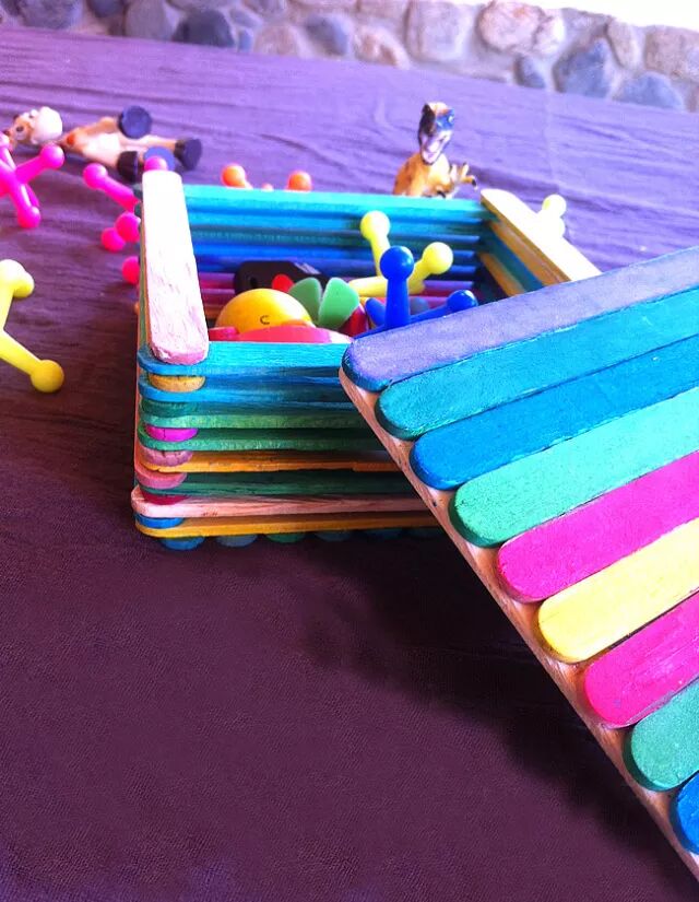 用冰棒棍制作玩具储物盒不需要什么技巧,只需要简单的操作步骤,孩子们发挥自己的想象,就能制作实用的成品啦!不仅可以锻炼哇的精细动作,还能培养色彩搭配的意识哦!