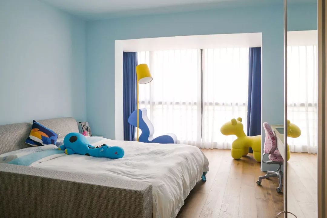 卧室刷上了她最喜欢的天蓝色,