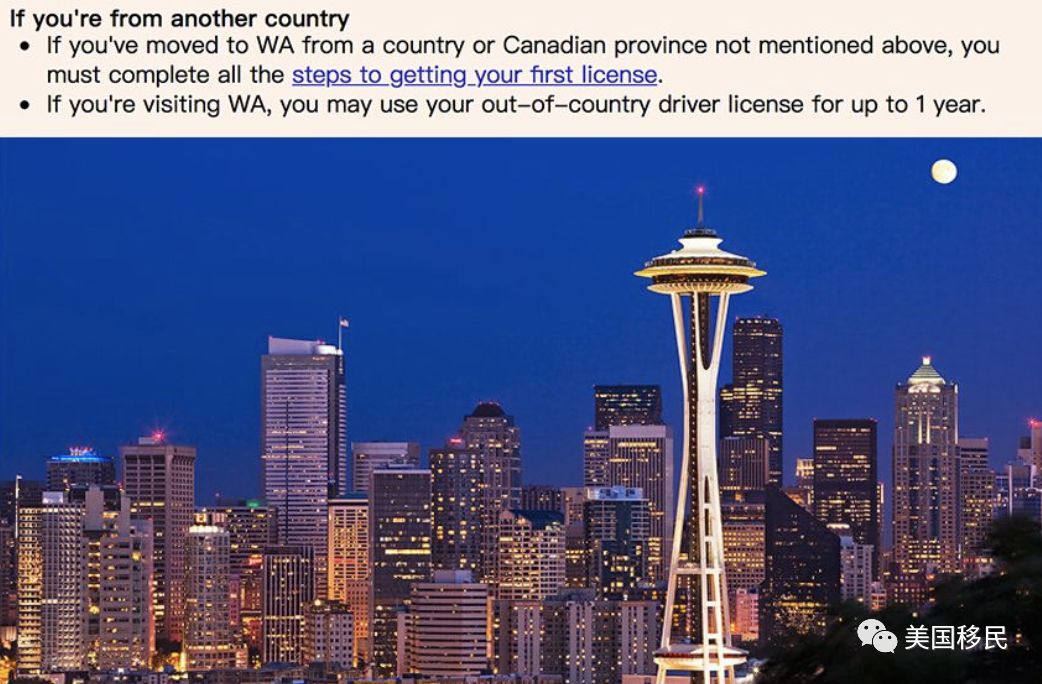 在华盛顿州,游客可以使用有效的本国驾照达一年时间。