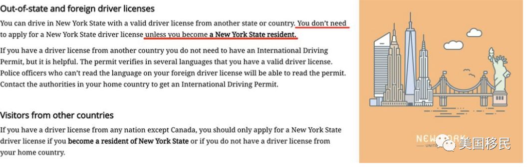 你可以在纽约持其他州或国家的有效驾照开车,除非你是纽约州的居民(连续居住90天及以上),否则你不需要申请纽约州的驾照。