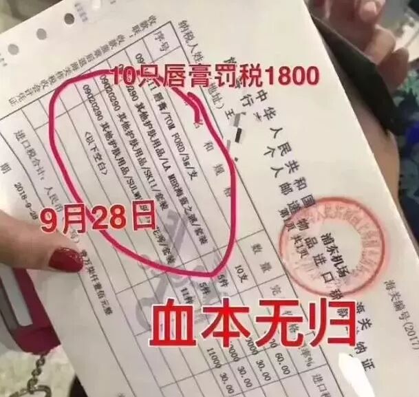 真实案例:10只Tom Ford唇膏,罚税1800!血本无归了。。。