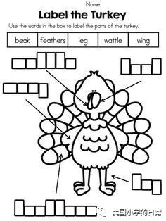 感恩节怎么能少了火鸡?美国老师先跟孩子们学习火鸡的组成部分,并标记起来: