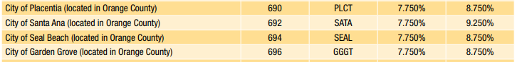 除了洛杉矶县外,一直税率比较低的橙县也有四个城市要上涨消费税。分别是Placentia、Seal Beach、Garden Grove、Santa Ana。