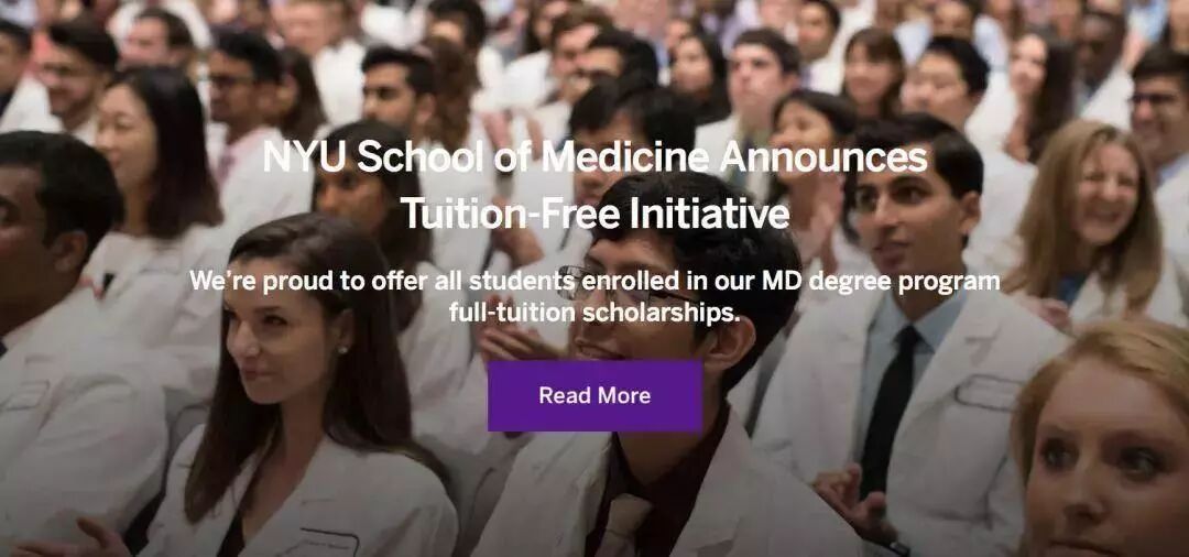 排名全美前十名的纽约大学医学院16日宣布,所有就读或未来注册入读该校医学院的学生,从今秋起全部免学费,该医学院一年学费约5万5000美元。总部设于华盛顿的全美医学院协会指出,2017年毕业的医学院学生约有72%背负学生贷款,学债中位数是18万美元;由于高学债,让部分有志学医的学子却步,也让医学院学生倾向选择高报酬的专科,导致收入相对较低的小儿科和家庭科医生短缺。