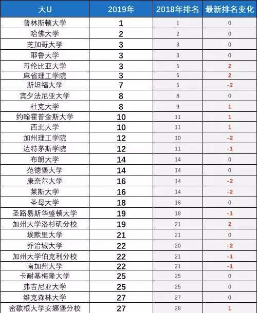 UCLA超越UCB,位列19名,成为前20名里的唯一公立大学;