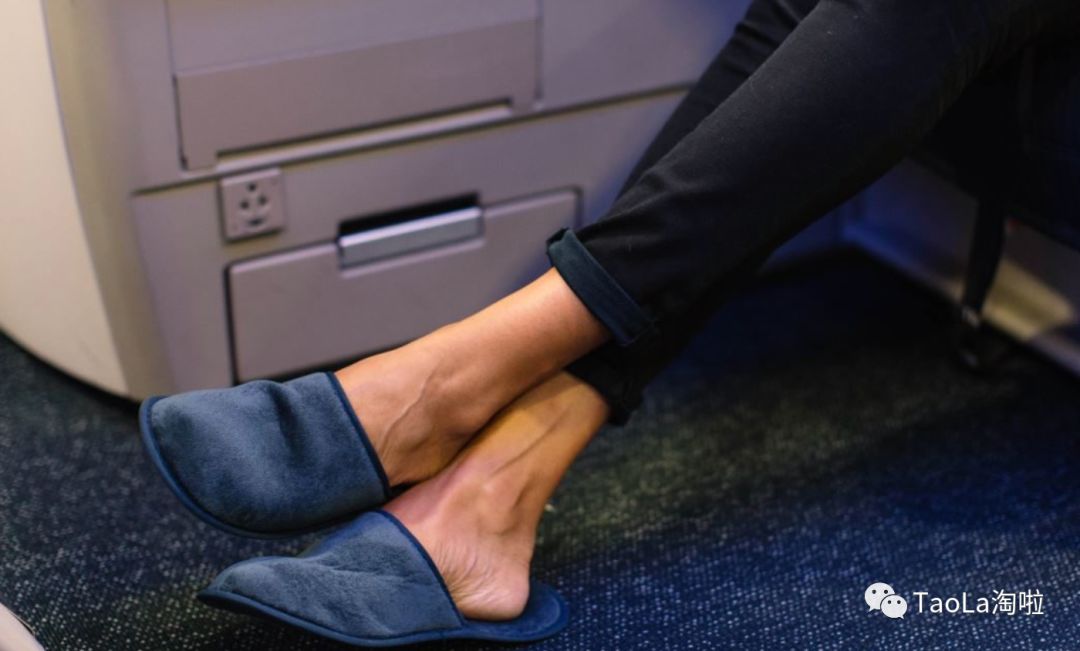 长途飞行穿了不舒服的鞋子恐怕是最难受的事情了,久坐身体循环本来就差,下肢水肿都是在所难免,如果双脚再被束缚在鞋子里那简直堪比酷刑。而且,机舱里的温度坐久难免脚底会有凉意。所以多给双脚一些喘息的空间吧,脱掉鞋子,穿上保暖又蓬松的袜子,或者机舱里免费的袜子也ok,再穿着拖鞋,然后该睡觉睡觉,该看剧看剧吧,脚底一直暖暖也不会有勒痕,这样一来把脚蜷在座位上四舍五入也有点被升舱的感觉了....