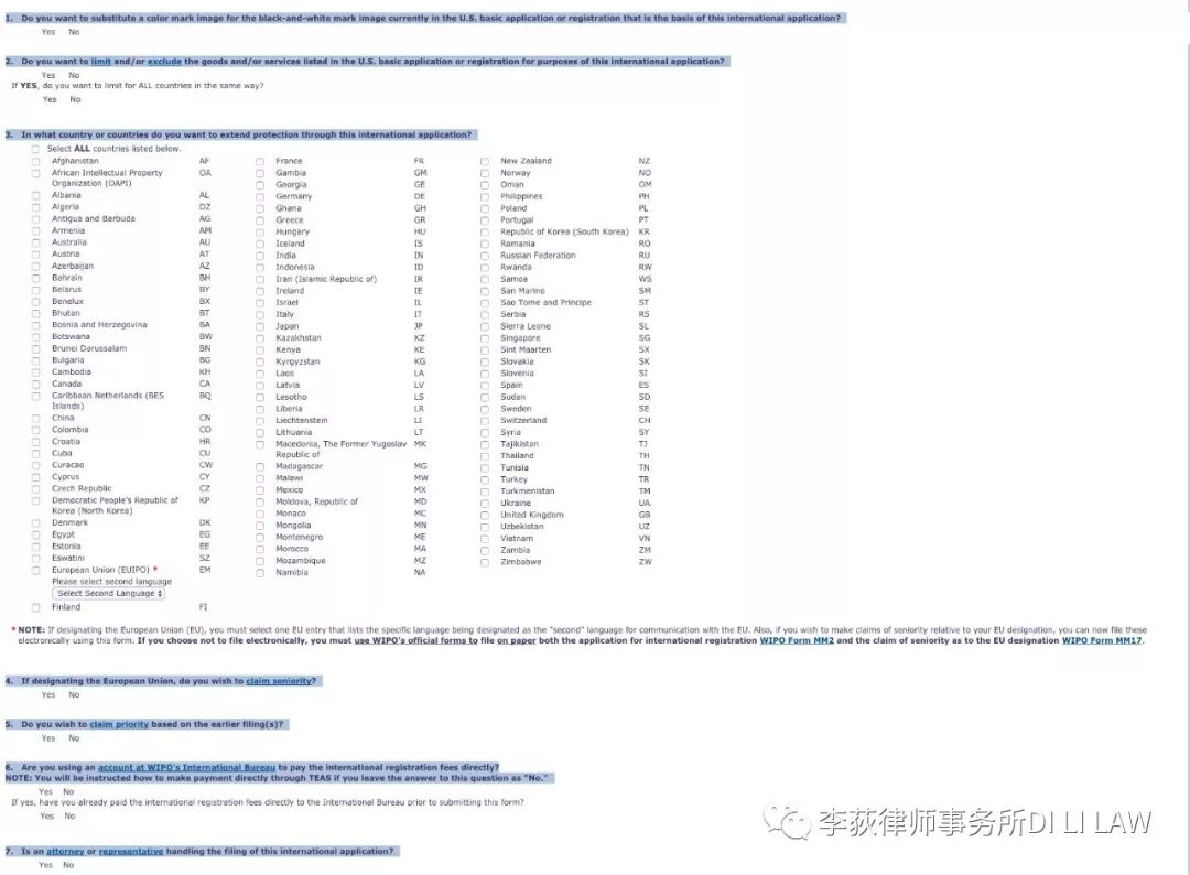 通过该表格,申请人可以非常方便地指定商标权人希望得到保护的具体国家,如下图所示。