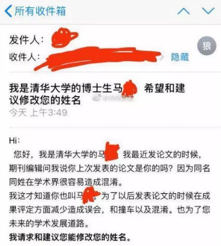 这两天清华博士要求重名者改名的事情被网友热议,以为是个段子,没想到还有实锤。