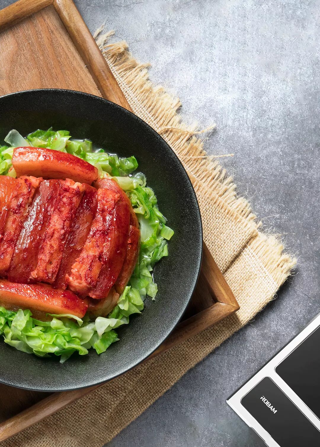 芋头和五花肉都切成厚片,只靠煸炒当然不能真正入味。将五花肉和芋头一片片整齐码好,扣在碗中,倒上勾芡调味,即可上竹笼,放入老板下嵌式蒸箱SZ01,等待芋头吸收五花肉上的勾芡汁,混合香气扑鼻而来,让人垂涎欲滴。