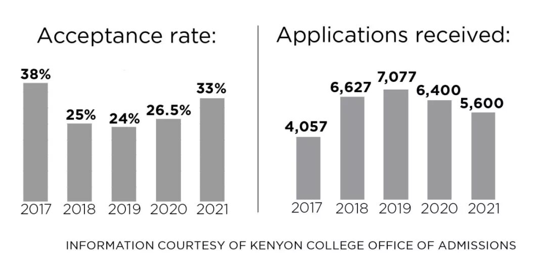 (Kenyon College,2020 U.S. News文理学院排名27)2018届申请人数飙升63%,排名随之水涨船高。