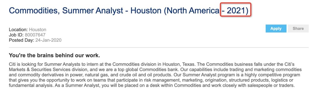 同样,Citi也开启了2021的岗位,加入到人才抢夺大战中。