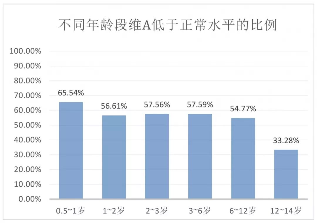 而且,年龄段越小,缺乏维生素 A 的比例就越高!