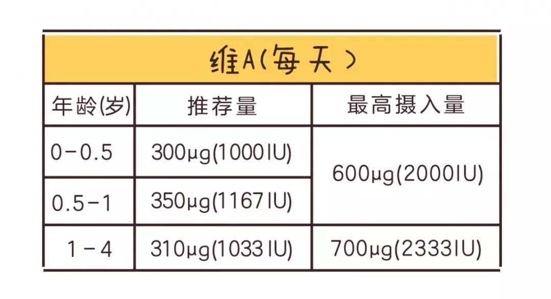 当然,以上这些只是粗略的计算。如果担心自己宝宝有没有缺维A,最靠谱的还是直接去医院测量一下血清中的维 A 水平。