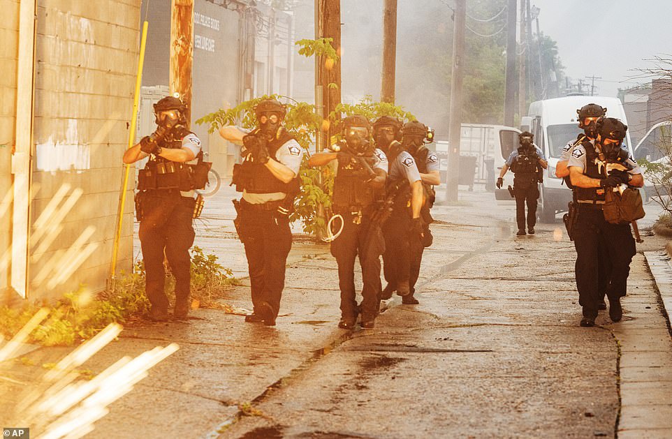 26日,明尼亚波利斯警察使用催泪弹和橡皮子弹,驱散示威者(美联社)