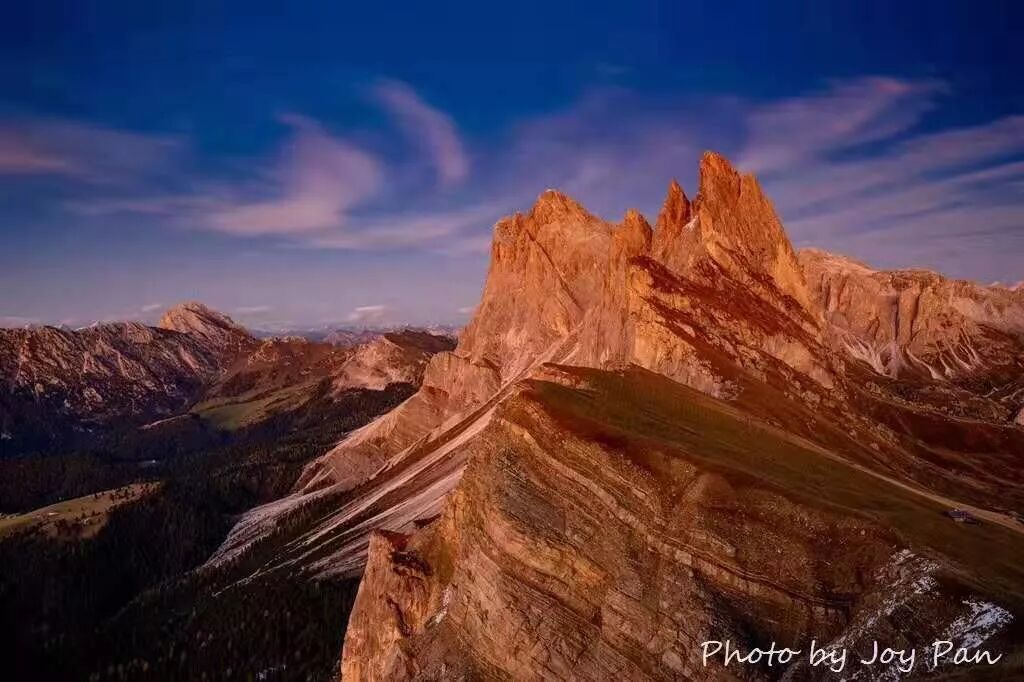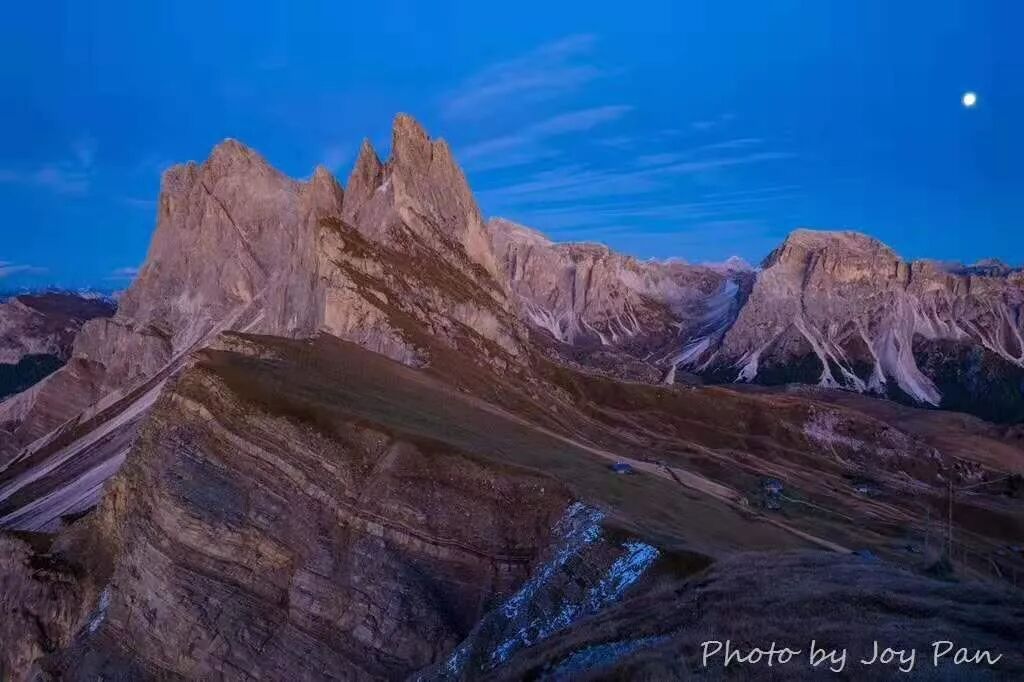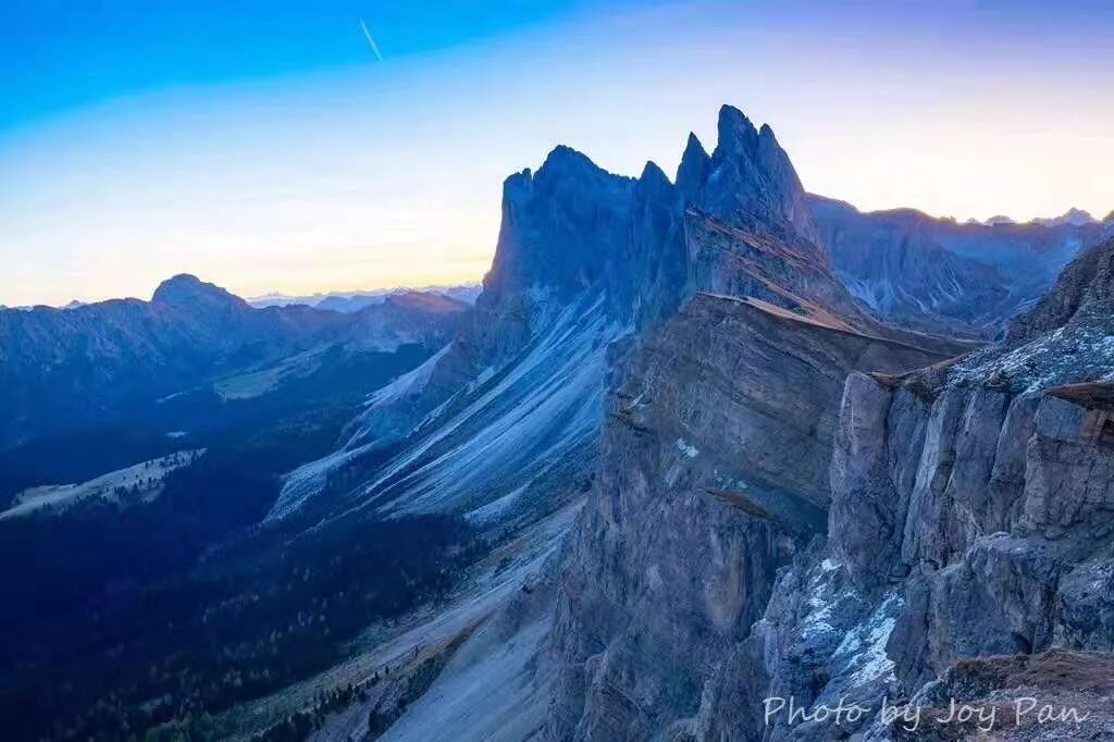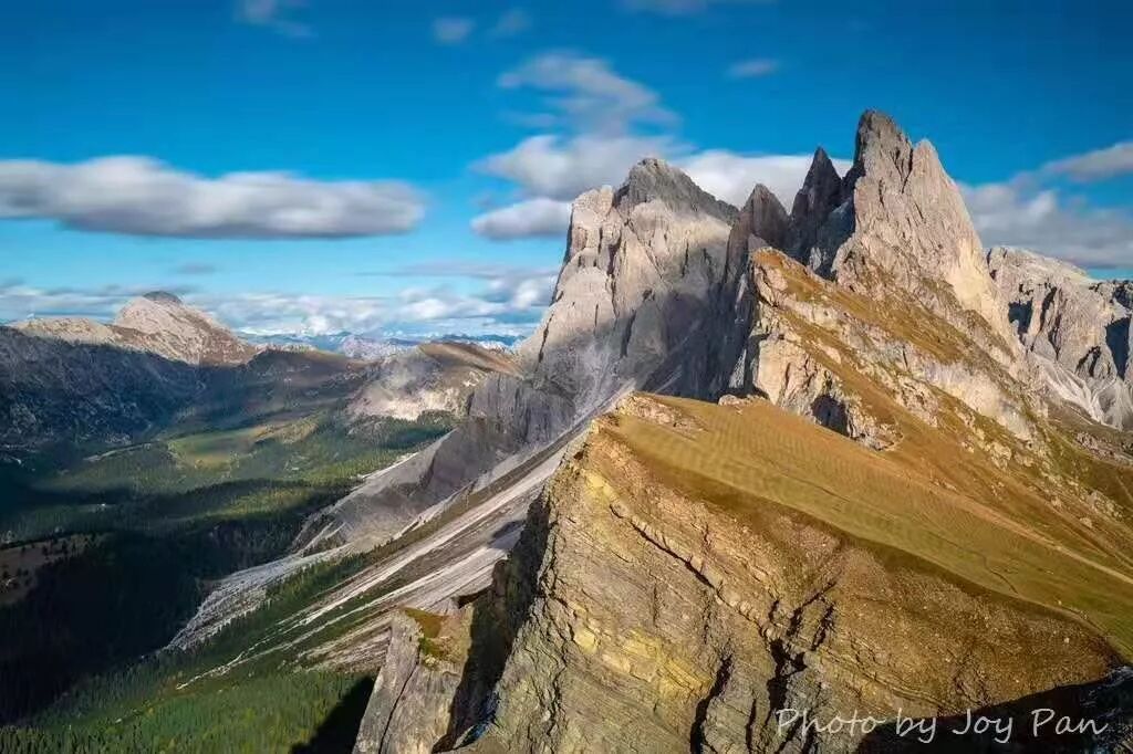 难忘多洛米蒂!我们乘坐两段索道,来到刀峰山 (Seceda)。为了在不同的光影下欣赏和感受刀背山,我们从索道下来后又在2500米的高山上徒步半个多小时,安营扎寨,度过了平生第一次帐篷睡袋的时光。