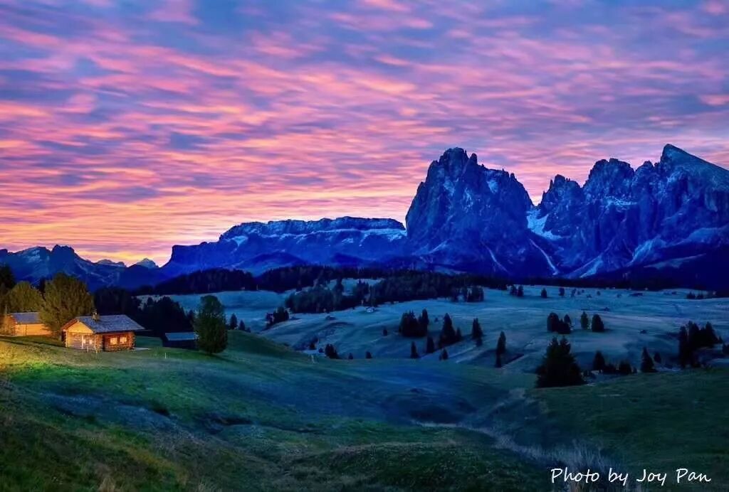 我们一行六人,在威尼斯集合,分两部车,直奔意大利北部山区。行驶在崎岖山路,有些景点连住两晚,每天早出晚归,昼伏夜出,这是摄影人独有的作息时间表。运气好的时候碰到火烧云、晨雾缭绕,置身于人间仙境的感觉一点都不夸张。