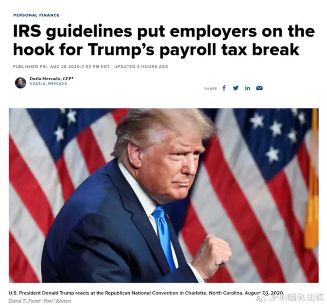 美国国税局上周五晚(8月28日)公布了广受关注的关于美国总统川普推行的减免工资税的指导方针,将缴纳工资税推延至2021年4月。