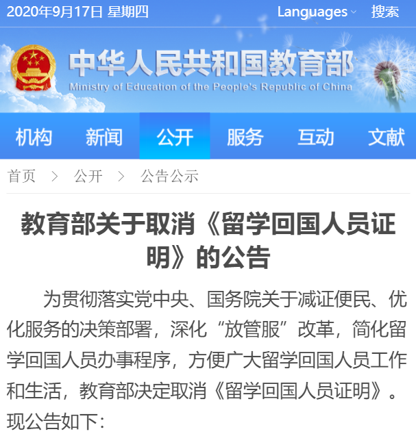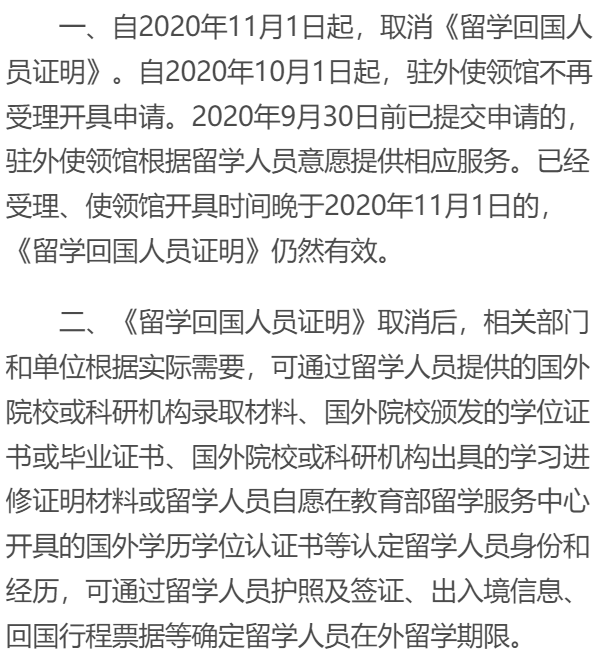 在教育部的公告里面也是这么说的,取消该证明,就是为了减证便民,简化留学回国人员办事程序,方便广大海归的工作和生活。