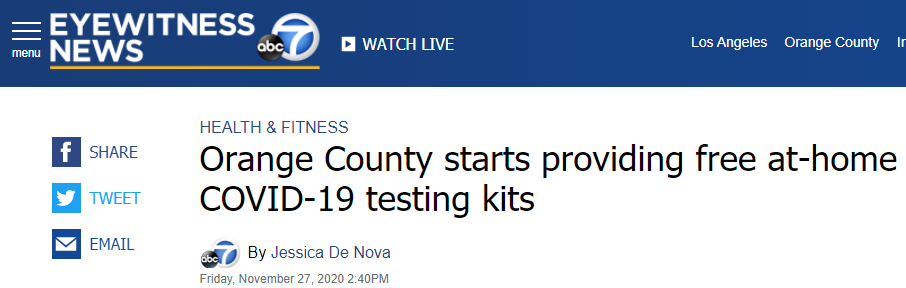 当地官员表示,橙县是美国第一个向公众提供在家可完成的唾液PCR检测的县。橙县目前对此种家用新冠检测试剂盒的需求十分大。