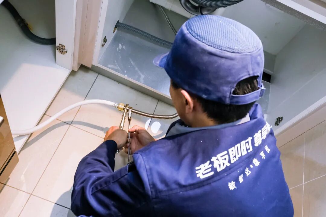 莫慌!老板电器专业服务技师通过拆除柜门、打孔、接三通、接进排水管等操作,一气呵成地解决了上下水的改造,就连安装洗碗机后的清洁问题板栗们也无需担忧。
