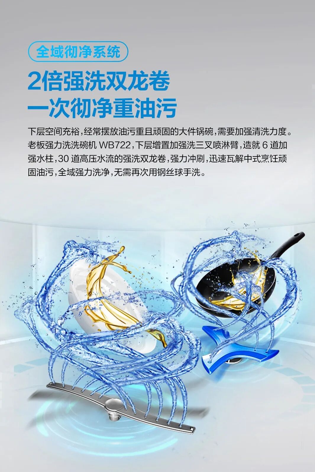 不想拆橱柜又想要购买拥有强力性能洗碗机的何女士,在千挑万选之后,终于将目光放在了既拥有600mm高度轻松适配小厨房灶下空间,还兼顾8套中式大容量的老板强力洗洗碗机WB722。