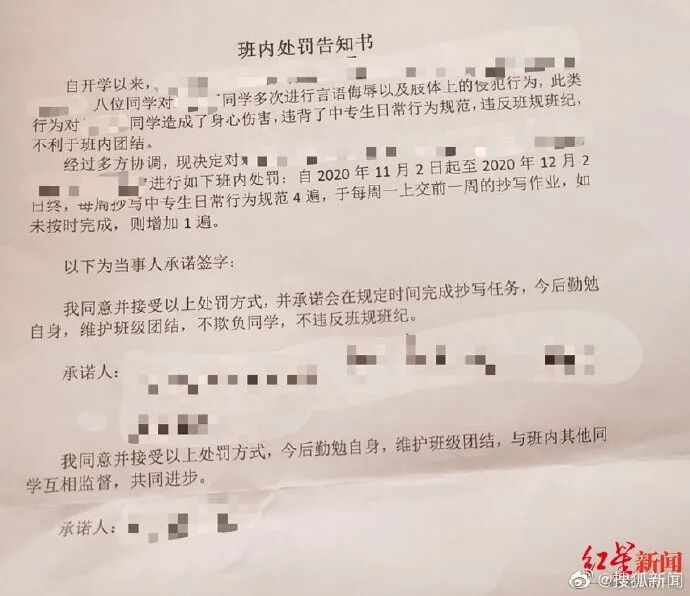 在新闻报道中,霸凌也并不罕见。就拿最近的来说,北京一名16岁男生被校园霸凌骚扰致重度抑郁,休学。霸凌者恶劣到什么程度呢?有人直接跟这位男生说:“你多久自杀啊?你现在没一个朋友,我建议你直接跳楼吧。”到这程度了,对涉事的8名学生的处罚只是罚抄行为规范。