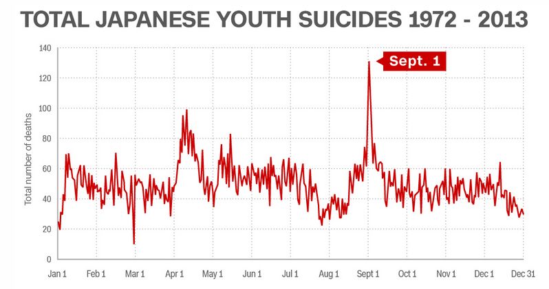 拿今年来说,9月1日,15岁初中生小松田辰乃辅跳楼身亡。在这之前,他已经3次自杀未遂。
