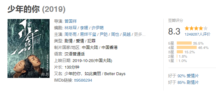 电影《少年的你》上映后,让更多人直观地看到被霸凌者的遭遇,40多万条豆瓣短评中,几乎每一条相关的评论,都在讲被霸凌的经历,或旁观过的霸凌。