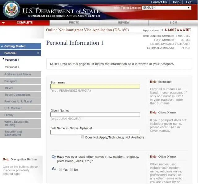 DS-160要填写的内容非常之多,基本上就是把自己的家底儿完全交代清��,需要准备的就是自己的护照号码,I-20上的SEVIS number和School Code,还有学校的地址。自己第一次填的话还是比较麻烦的,一步一步走下去至少也得有一个多小时。